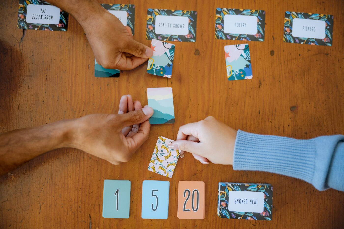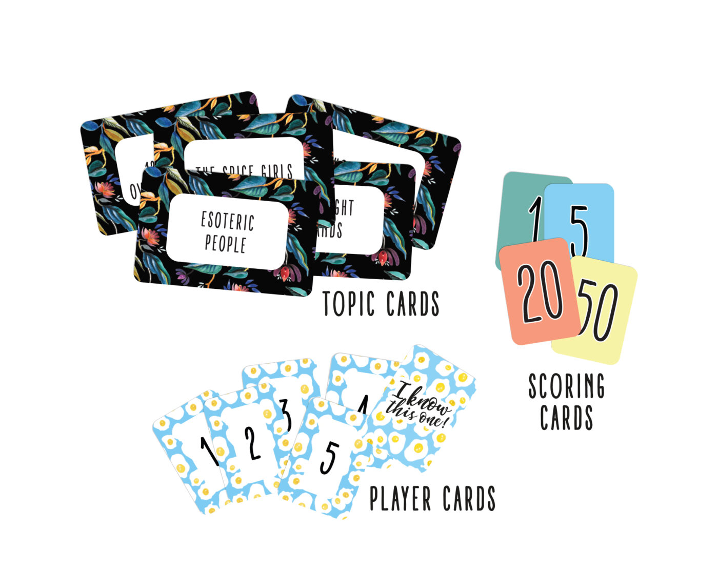 EASY SETUP: Each player receives their own hand of 6 cards, then you reveal 5 topic cards in the center of the table. Each round, simply reveal 5 new topic cards!
