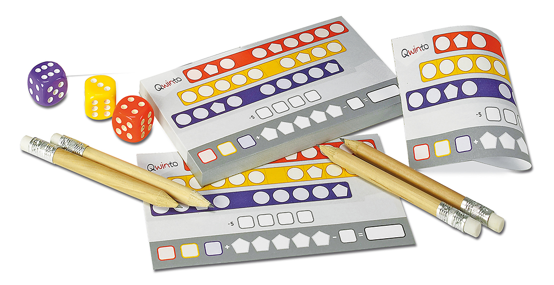 Dans QWINTO, tous les lancers profitent à tous les joueurs, mais chacun s'en sert à sa manière pour compléter sa propre fiche de score. A son tour, l'un des joueurs lance au choix un, deux ou trois dés. Tout le monde peut alors inscrire le total obtenu dans une rangée dont la couleur est identique à celle de l'un de ses dés lancés. Mais attention à bien respecter les deux règles d'or : dans les rangées, les nombres doivent respecter un ordre de valeur croissant de gauche à droite. Et aucun nombre ne doit apparaître deux fois : ni dans les rangées, ni dans les colonnes ! Dès qu'un joueur a complété deux rangées, la partie prend fin et on procède au décompte des points. Un jeu simple et rapide qui vous demandera de bien peser chacune de vos décisions !