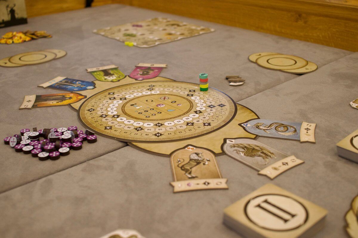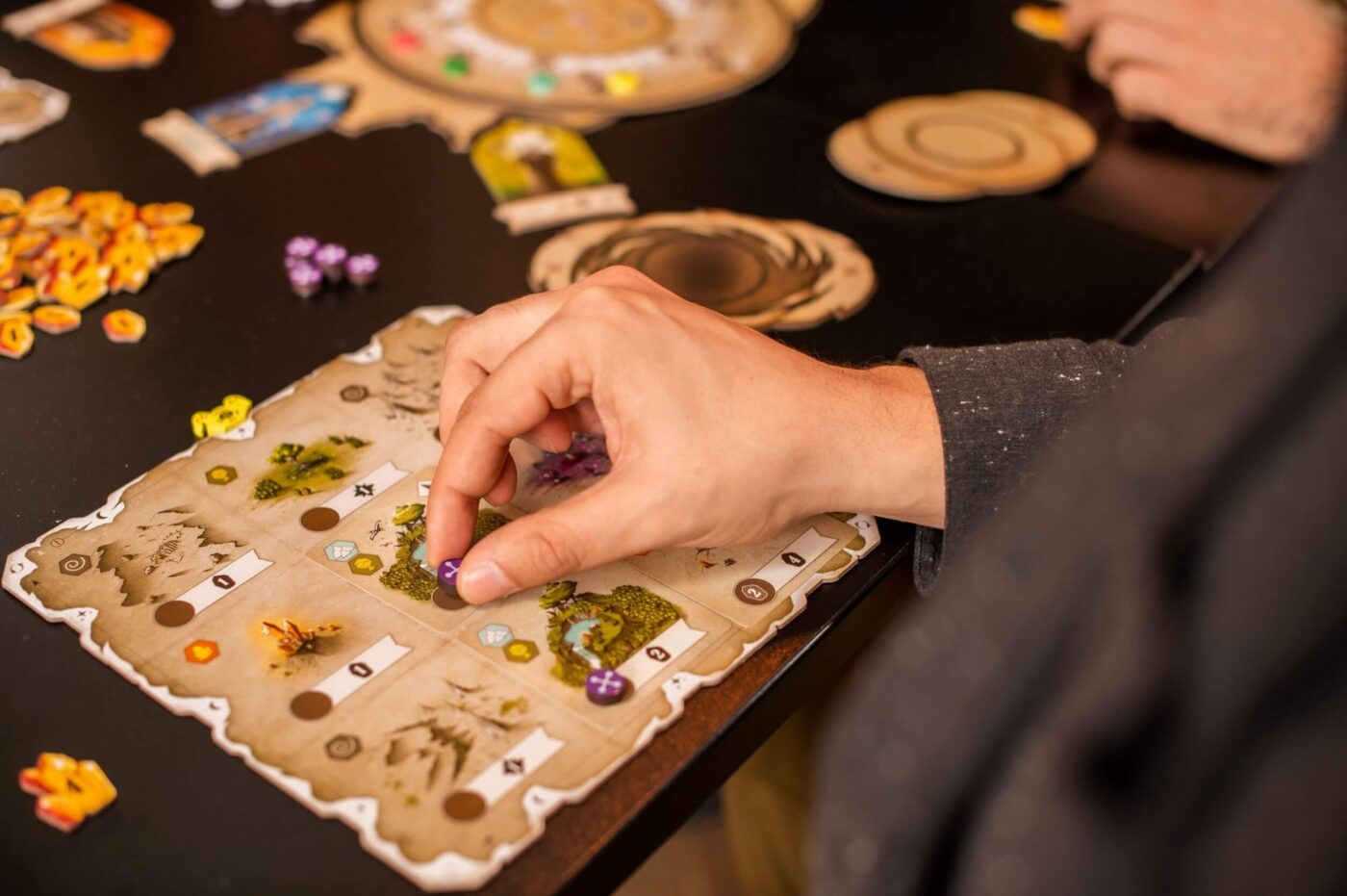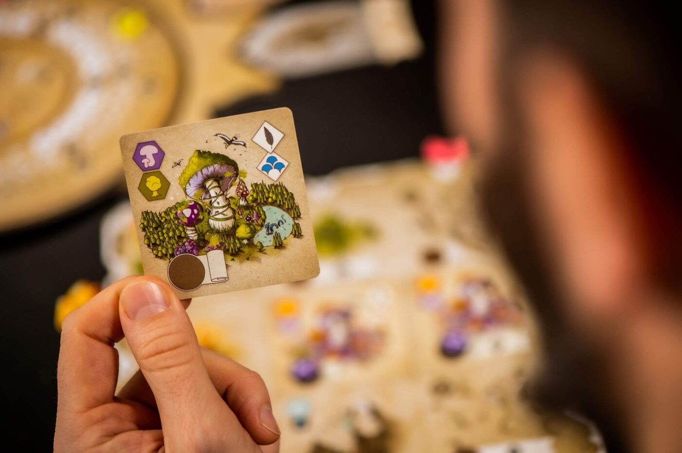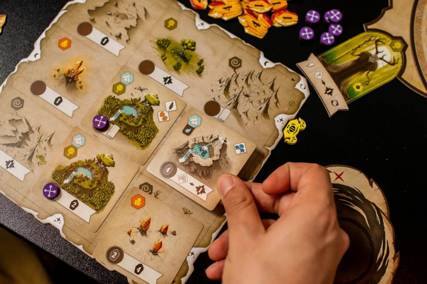 Obtain the most victory points, represented as Life Energy, to win the game. You have 2 Ages to turn your world into an energetic core of Rauha. In Age 1, vegetation, terrain, and wildlife will appear. In Ape 2, civilizations will thrive.