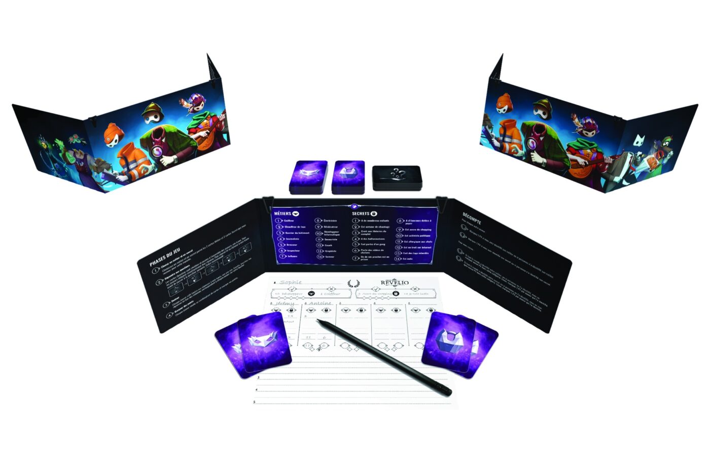 Dans Revelio, les joueurs vont incarner un personnage d’un univers spécifique : médiéval-fantastique, époque victorienne ou contemporaine, exerçant une activité précise et gardant un secret bien particulier. À chacun des 5 tours, les joueurs répondront tous à la même question comme le ferait leur personnage, en dévoilant quelques indices sur leur personnalité, afin que les autres finissent par découvrir qui ils sont. Mais pas tous, sinon, le joueur ne marque pas de points. Et lui-même doit trouver l’identité des autres, métier et secret, pour ajouter des points qui lui permettront de remporter la victoire !