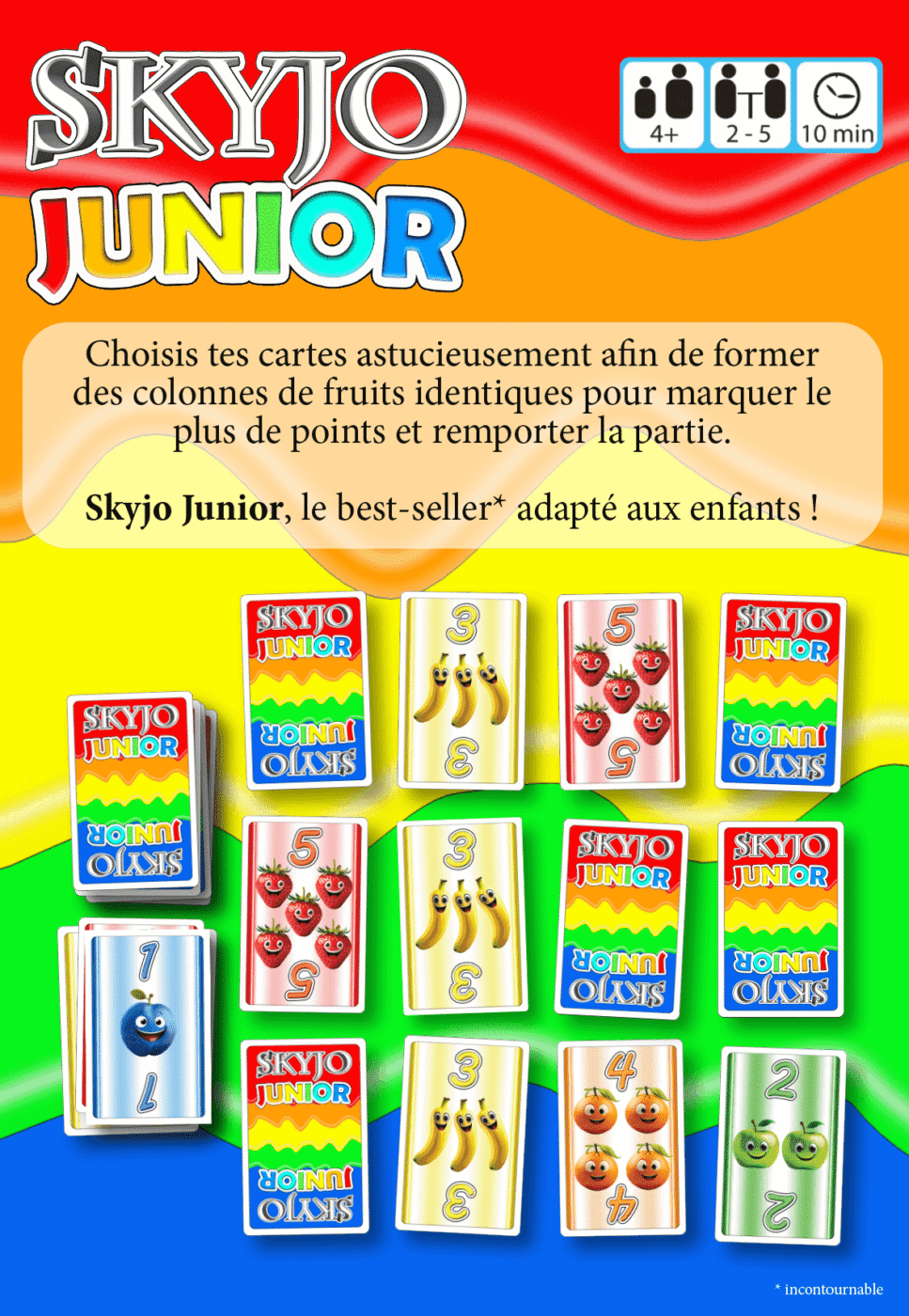 Une version colorée et simplifiée du célèbre jeu Skyjo, pensée spécialement pour les petits dès 4 ans.