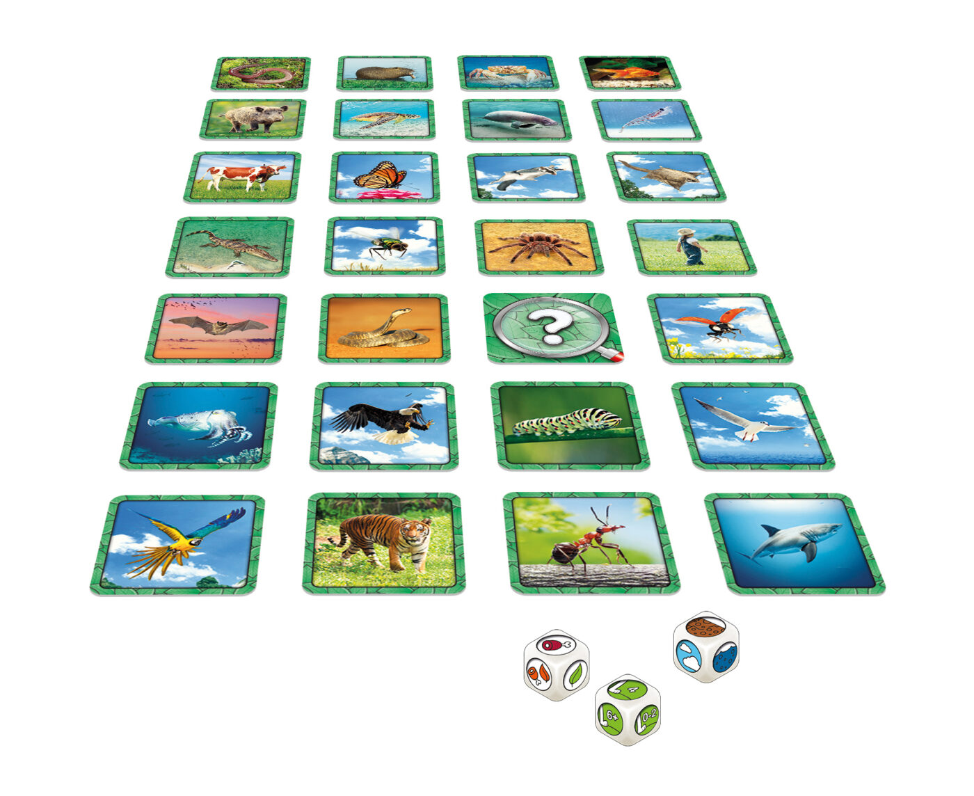 Lancez les dés et soyez le premier à désigner l’animal qui recoupe les trois caractéristiques annoncées : environnement, alimentation et nombre de pattes. Des variantes rendent le jeu accessible et adapté à toutes les tranches d’âge. Specific est un jeu qui ne se contente pas d’être pédagogique. Il est surtout super drôle et dynamique !
