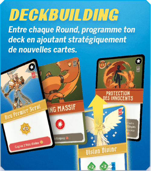 Au fil des rounds, ajoute de nouvelles cartes à ton deck sans en modifier l’ordre, pour programmer une stratégie redoutable et imprévisible. Tes cartes s’activent automatiquement, mais chaque choix de carte est crucial pour créer la meilleure synergie et mettre ton adversaire K.O.
