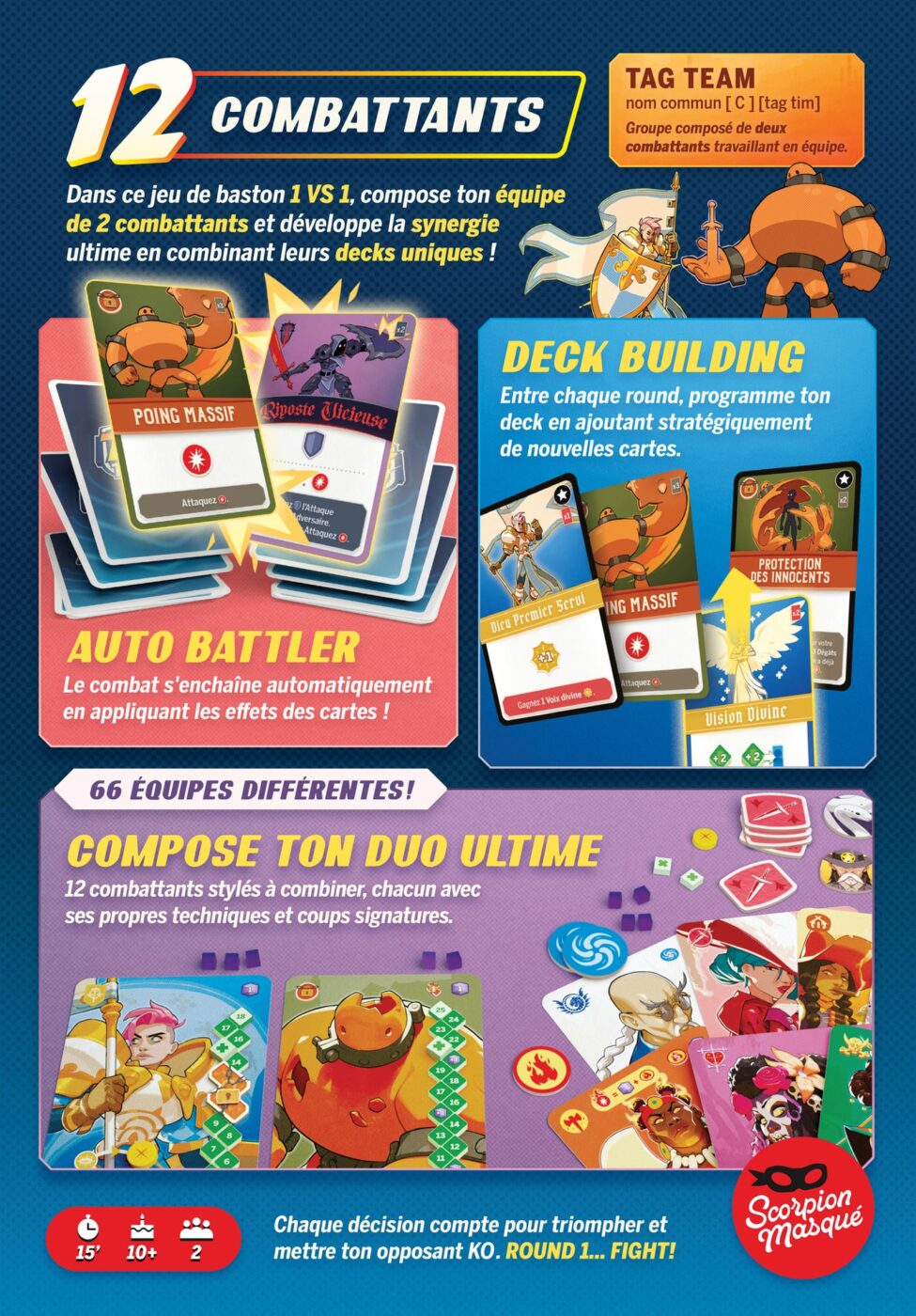 Entre dans l’arène avec Tag Team, un jeu nerveux qui mixe auto battler et deckbuilding intelligent. Choisis tes 2 combattants parmi 12 personnages charismatiques, construis leur deck commun… et prépare ton combo fatal.