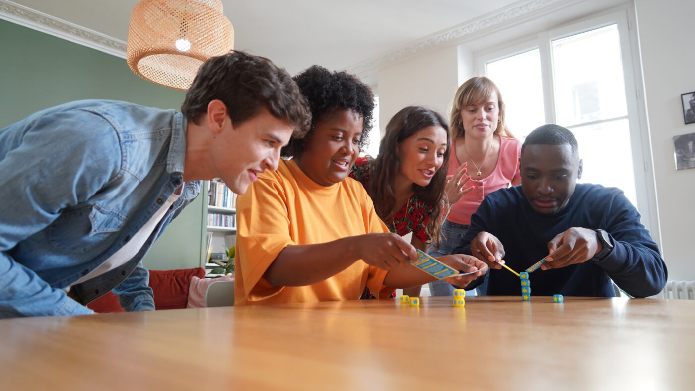 The first task will be deciding which two teams will go first: Rock paper scissors, arm wrestling, catch – you decide – we don’t want to know! The Referee team draws a card and reads it aloud. When everyone is ready, the Referee team starts the countdown by saying: “Ready? Task Team!” The two participating teams then madly scramble to win the task.