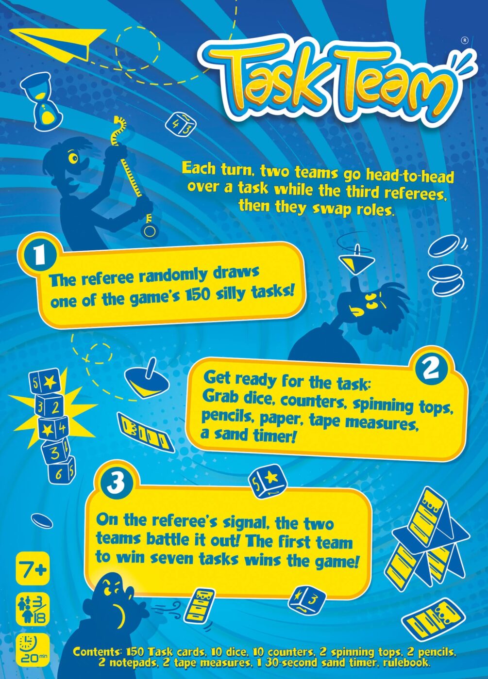 The first team to win seven Task cards is declared the winner!
