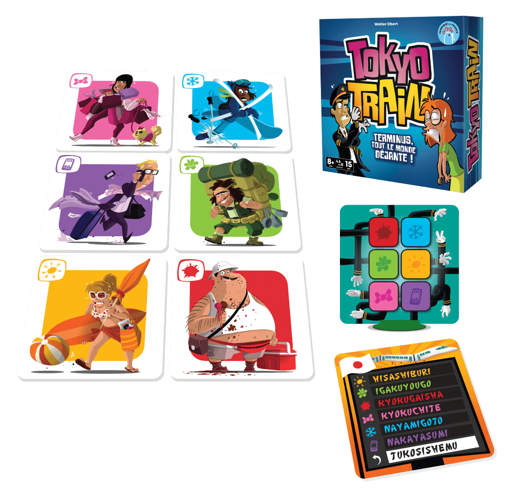 À Tokyo, il n’est pas simple de trouver sa place dans le train. Un joueur prend le rôle du contrôleur qui aide son équipier à placer ses 6 cartes dans la bonne configuration. Accrochez-vous, les instructions sont uniquement données par des mouvements de bras et quelques mots en japonais! Délire assuré!
