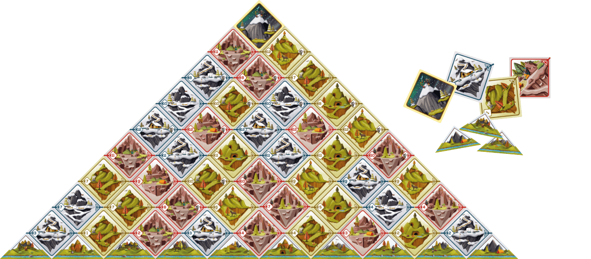 Pour ce faire, vos compagnons de cordée et vous allez devoir remplir la montagne (représentée par une grille pyramidale de 45 cartes) avec des Versants, avant d’y ajouter le Sommet. Si vous y parvenez, l’expédition sera couronnée de succès et toute votre équipe vivra son heure de gloire... En revanche, si un seul alpiniste ne peut plus jouer ou défausser de cartes, l’ascension échouet et la partie est perdue ! Attention, la communication est limitée et vous ne pouvez pas discuter de vos actions avec les autres joueurs... Sinon, vous risqueriez l’avalanche!