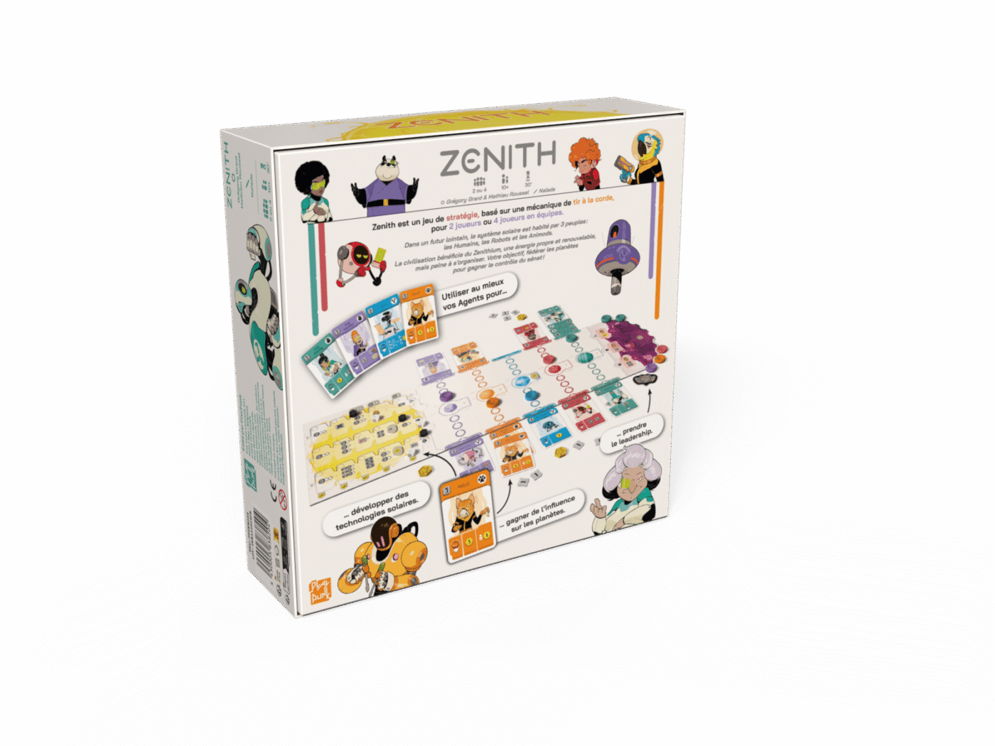 In the far-off future, the solar system is inhabited by 3 races: Humans, Robots, and Animods. Civilization runs off Of Zenithium, a clean and renewable energy source. but coexistence is a struggle. Your goal: unite the planets to gain control of the senate!